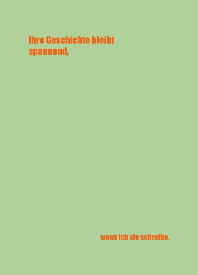 „Ihre Geschichte bleibt spannend, wenn ich sie schreibe.“ Was auch immer es ist – ich verwandle Ihre Erinnerungen, Ihre Lebenswege, Ihre Erlebnisse in interessante Texte.